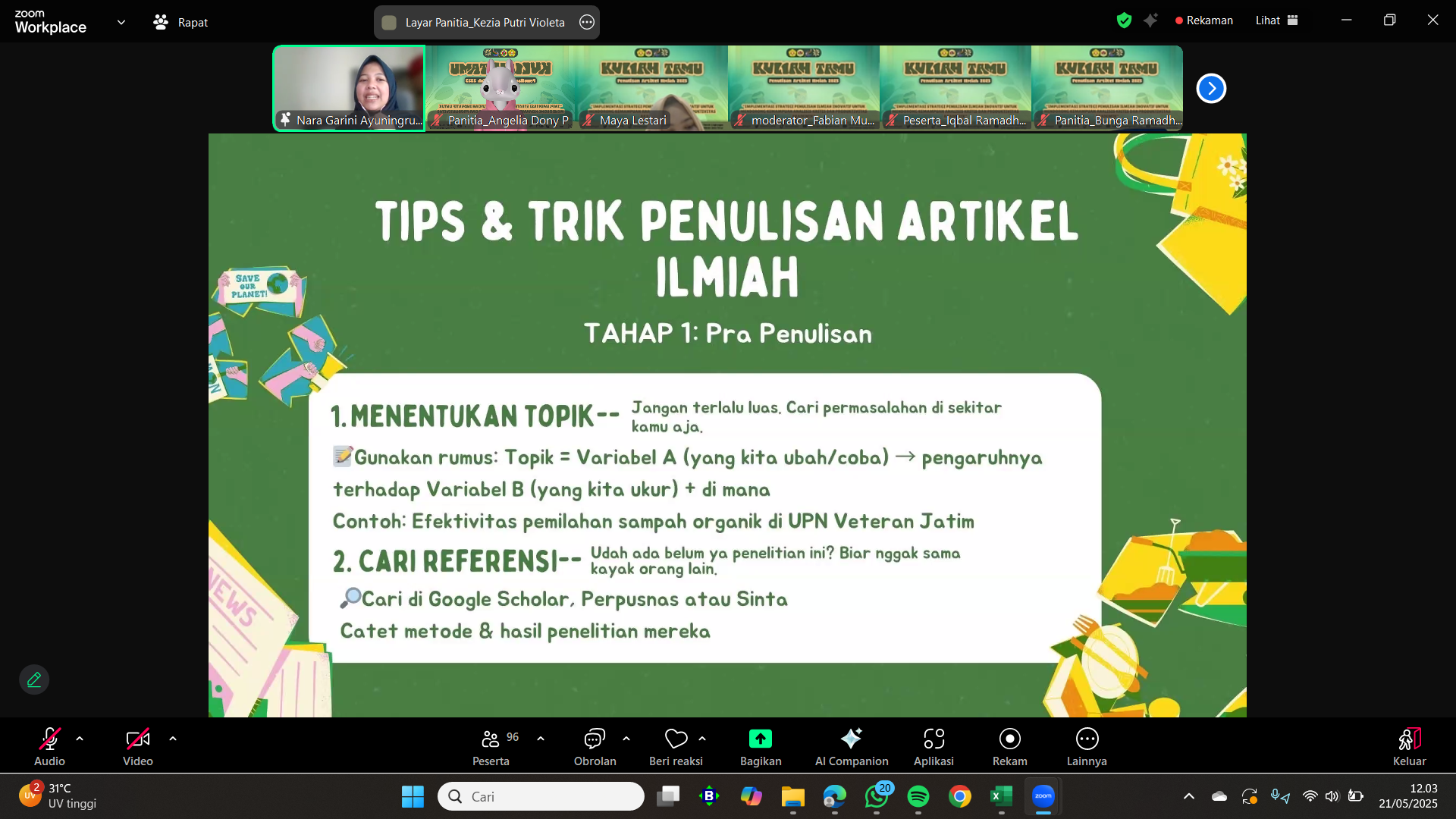 Even though there were some internet connection issues, the event went smoothly with lots of enthusiasm from the participants. Many students felt helped because they got practical tips they could immediately use in writing their scientific papers, whether for class assignments or journal publications. The committee emphasized that they hope this event will motivate students to be more productive in their academic work.